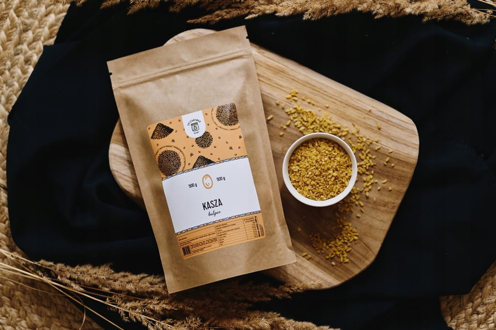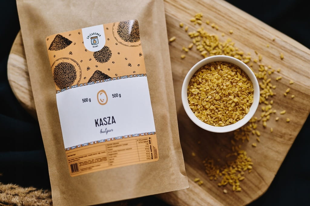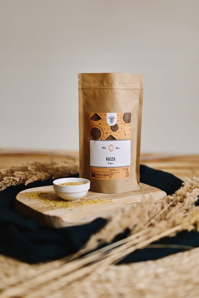 Nasza kasza bulgur jest zapakowana w praktyczną torebkę wielokrotnego użytku typu doypack z zipem, która chroni produkt przed dostępem światła i wilgoci. Dzięki temu kasza zachowuje świeżość na dłużej. Torebka posiada spójną, klasyczną i estetyczną etykietę, doskonale wpisującą się w filozofię Spiżarenki – naturalność, jakość i prostota.