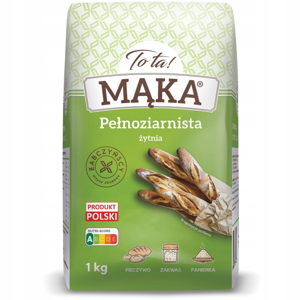 Ten rodzaj mąki powstaje z przemiału całych ziaren i służy do wypieku ciemnego pieczywa. W przeciwieństwie do mąki razowej, jest poddana kilkukrotnemu mieleniu, przez co jest trochę drobniejsza. Mąka żytnia pełnoziarnista to mąka typu 2000, podobnie jak razowa. Różnica dotyczy stopnia granulacji - łuska ziarna pełnoziarnistej jest niewidoczna, natomiast w mące razowej łuska jest zdecydowanie zauważalna. Sposób jej pozyskiwania powoduje, że mąka ta zachowuje wszystko, co cenne. Mąka żytnia pełnoziarnista TYP 2000 marki ToTa! to produkt, który łączy rzetelną jakość polskich młynów Żabczyńscy z podejściem Spiżarenki do autentycznych, prostych i wartościowych produktów spożywczych. Zmielona z pełnego ziarna żyta, nieoczyszczona, zachowująca wszystkie cenne składniki odżywcze – ta mąka to ukłon w stronę dawnej kuchni, gdzie jedzenie miało smak, treść i wartość.