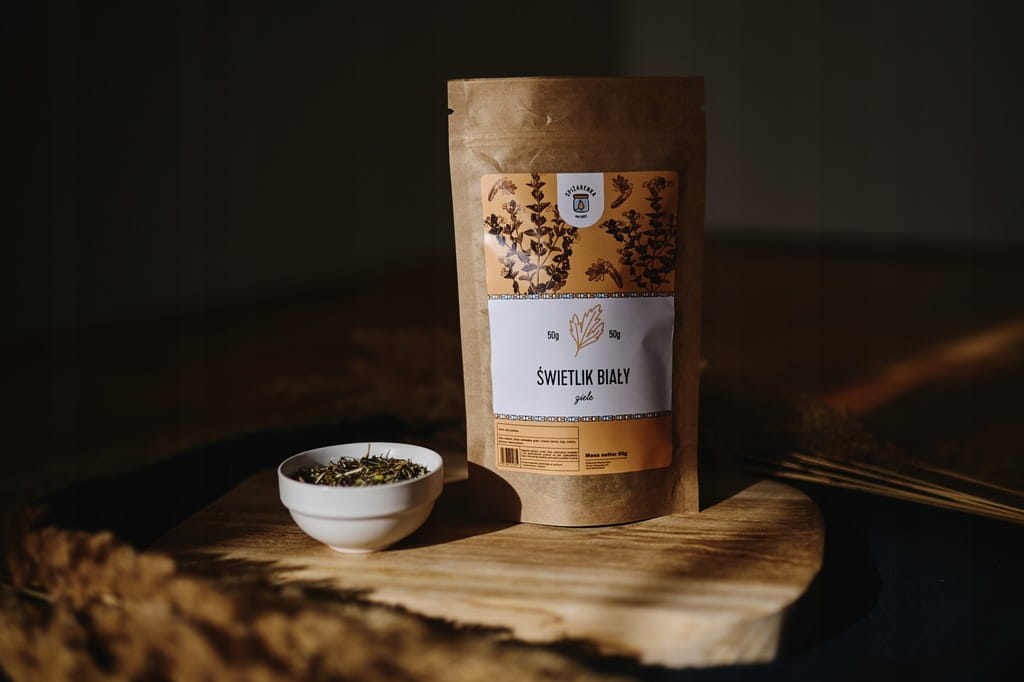 Świetlik biały ziele od Spiżarenki oferujemy w praktycznej torebce wielokrotnego użytku typu doyopack z zipem, która: